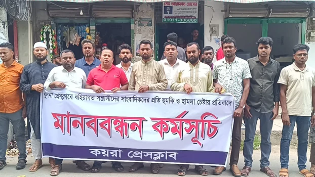 মানববন্ধনে বক্তারা বলেন, সংবাদপত্র ও গণমাধ্যমের স্বাধীনতা রক্ষায় এ ধরনের হামলা ও ভয়ভীতি কোনোভাবেই মেনে নেওয়া যায় না। এটি শুধু ব্যক্তি আক্রমণ নয়—এটি গণমাধ্যমের স্বাধীনতার ওপর আঘাত।