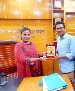 বৃহস্পতিবার(২৩ অক্টোবর) উপজেলা নির্বাহী অফিসারের কার্যালয়ে বিদায়ী উপজেলা নির্বাহী অফিসার মোছা ঃ রণী খাতুনকে ক্রেষ্ট প্রদান করেন সাইডারের নির্বাহী পরিচালক মোঃ মুরশিদ আলম। এ সময় আরও উপস্থিত ছিলেন সাইডারের সভাপতি সহ অন্যান্য সদস্যবৃন্দ।