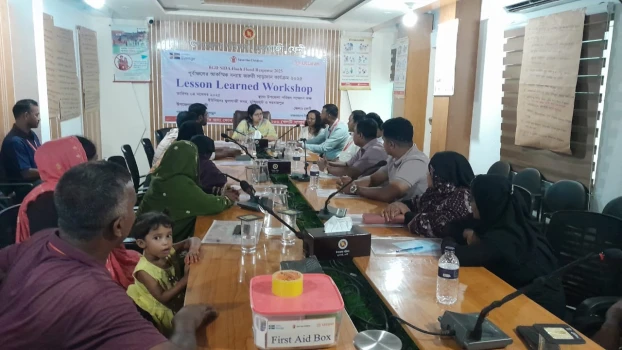 উত্তরণ সংস্থার ফুলগাজী উপজেলায় প্রকল্পের লেসন লার্ণ কর্মশালা ৪ঠা নভেম্বর ২০২৫ তারিখ রোজ মঙ্গলবার সকাল ৯.৩০ মিনিটে দাতা সংস্থা সিডা এর অর্থায়নে সেভ দ্য চিলড্রেন ইন্টারন্যাশন্যাল এর সহযোগিতায় উত্তরণ কর্তৃক বাস্তবায়িত BGD SIDA Flash Flood Response 2025 প্রকল্পের মাধ্যমে ফেনী জেলার ফুলগাজী উপজেলার ফুলগাজী সদর, মুন্সিরহাট ও দরবারপুর ইউনিয়নে ২০২৫ শের বন্যায় ক্ষতিগ্রস্থ ৯০০ জন উপকারভোগীর মাঝে শর্তহীন নগদ টাকা ও হাইজিন কিটস বিতরণ কার্যক্রম পরিচালনা শেষে প্রকল্পের লেসন লার্ণ কর্মশালা ফুলগাজী উপজেলা পরিষদের সম্মেলন কক্ষে অনুষ্ঠিত হয়। প্রকল্পের সমন্বয়কারী হাসিনা পারভীনের সভাপতিত্বে লেসন লার্ণ কর্মশালায় প্রধান অতিথি হিসাবে উপস্থিত ছিলেন ফুলগাজী উপজেলার সুযোগ্য উপজেলা নির্বাহী অফিসার জনাবা ফাহরিয়া ইসলাম, বিশেষ অতিথি হিসাবে উপস্থিত ছিলেন দায়িত্বপ্রাপ্ত কর্মকর্তা-ফুলগাজী সদর ইউনিয়ন এবং উপজেলা কৃষি কর্মকর্তা জনাব মোঃ খোরশেদ আলম, দায়িত্বপ্রাপ্ত কর্মকর্তা- মুন্সিরহাট ইউনিয়ন এবং উপজেলা একাডেমিক সুপারভাইজার জনাব মোঃ মোয়াজ্জেম হোসাইন, দায়িত্বপ্রাপ্ত কর্মকর্তা- দরবারপুর ইউনিয়ন ও উপজেলা যুব উন্নয়ন কর্মকর্তা জনাব মোঃ মাসুদুল হক। আরও উপস্থিত ছিলেন, স্ব স্ব ইউনিয়নের প্রশাসনিক কর্মকর্তাগণ এবং সহযোগি সংস্থা সেভ দ্য চিলড্রেন এর মোঃ মোস্তাফিজুর রহমান - প্রজেক্ট অফিসার। কর্মশালায় আরও উপস্থিত ছিলেন ফুলগাজী সদর,মুন্সিরহাট ও দরবারপুর ইউনিয়নের প্রশাসনিক কর্মকর্তাগণ, উপকারভোগী, সাংবাদিক এবং উত্তরণ এর প্রকল্প স্টাফগণ।
