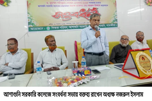 আশাশুনি সরকারি কলেজের অধ্যক্ষ প্রফেসর মোঃ নজরুল ইসলামকে সংবর্ধনা দেওয়া হয়েছে। মঙ্গলবার (১১ নভেম্বর) দুপুর ১২টা ৩০ মিনিটে কলেজের শিক্ষক মিলনায়তনে কলেজ শিক্ষক পরিষদের আয়োজনে এ সংবর্ধনা অনুষ্ঠিত হয়।