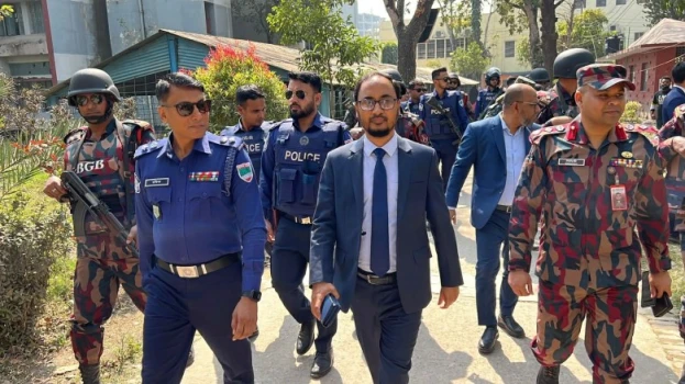 বেলা সাড়ে ১১টার দিকে নির্বাচনী পরিবেশ পরখ করতে মাঠে নামেন জেলার শীর্ষ কর্মকর্তারা। জেলা রিটার্নিং কর্মকর্তা আশেক হাসান ও পুলিশ সুপার সৈয়দ রফিকুল ইসলাম শহরের কেন্দ্রগুলো পরিদর্শন করেন। এসময় তাদের সাথে ছিলেন ৪৯ বিজিবি ব্যাটালিয়নের অধিনায়ক লেফটেন্যান্ট কর্নেল সাইফুল্লাহ সিদ্দিকীসহ প্রশাসনের একঝাঁক উর্ধ্বতন কর্মকর্তা। তারা মূলত সরকারি মাইকেল মধুসূদন (এমএম) কলেজের বিশালাকার বুথ ব্যবস্থাপনা ও দীর্ঘ লাইনে দাঁড়িয়ে থাকা ভোটারদের নিরাপত্তা পরিস্থিতি নিবিড়ভাবে পর্যবেক্ষণ করেন।